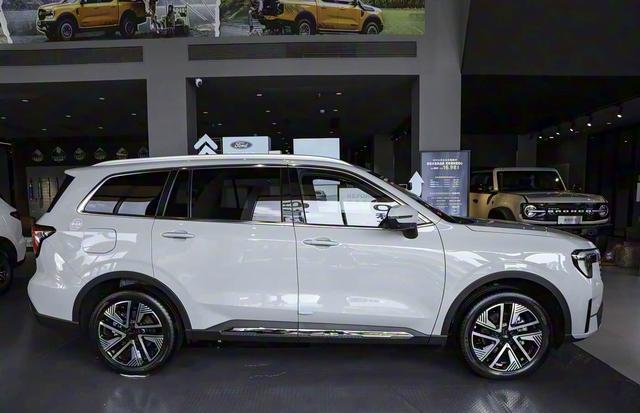 再来看车身侧面部分,领裕PHEV延续了燃油版车型的优雅线条,整体比例感十足。4920mm的车长、1930mm的车宽以及1760mm的车高,赋予了它宽敞的车内空间。大尺寸厚壁轮胎与双色回旋样式的半密闭式轮毂相搭配,不仅提升了车辆的视觉张力,还增强了其个性化属性。车身配色方面,领裕PHEV提供了多种选择,满足了不同消费者的审美需求。