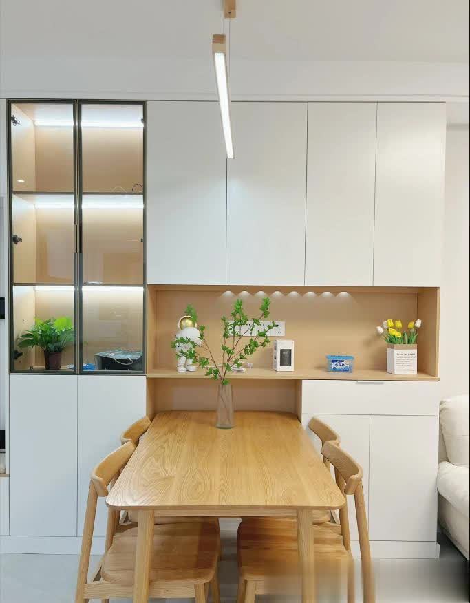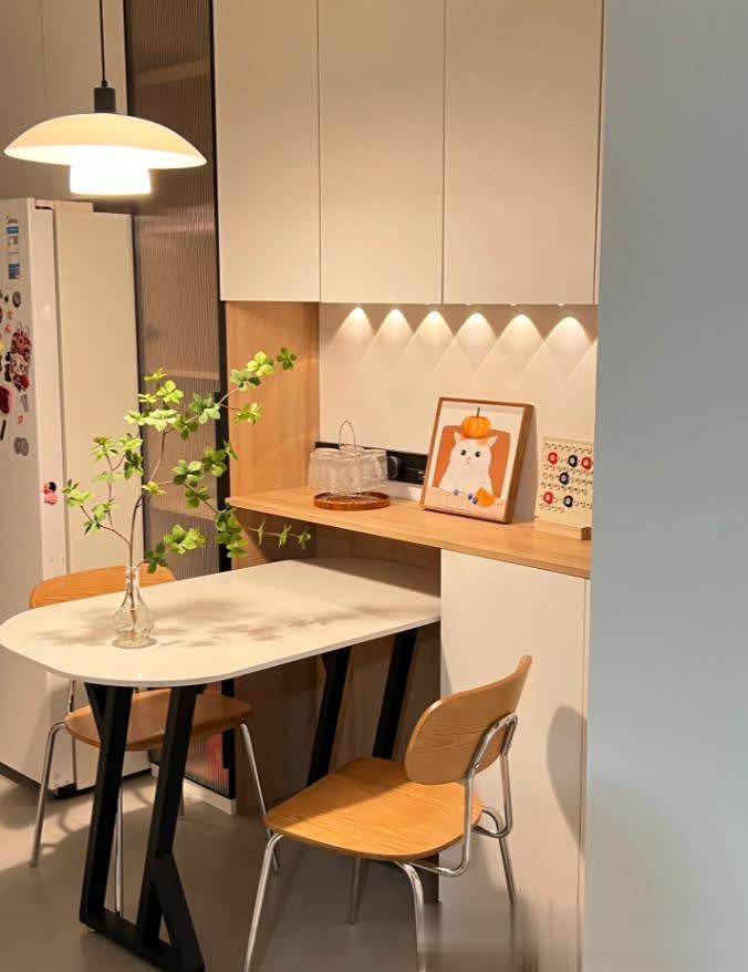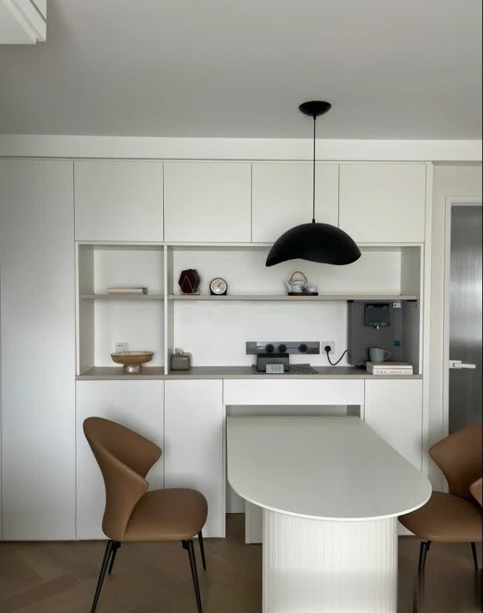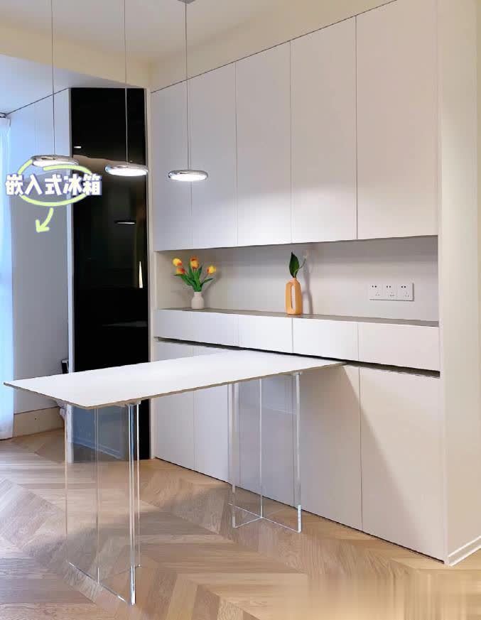 餐厅太小怎么办?嵌入式餐桌太香了!❤️餐厅做了整强的餐边柜,储物功能强大为了不挡过道,餐桌嵌入式设计更方便平时一家三口妥妥的,朋友来聚会拉出来8个人也行!特别喜欢开放区的设计,可以安放好多可爱的小物件轨道插座的设计富源优配,既高大上后期小家电随便放。嵌入式灯带氛围感满满,温馨又浪漫。我心动了